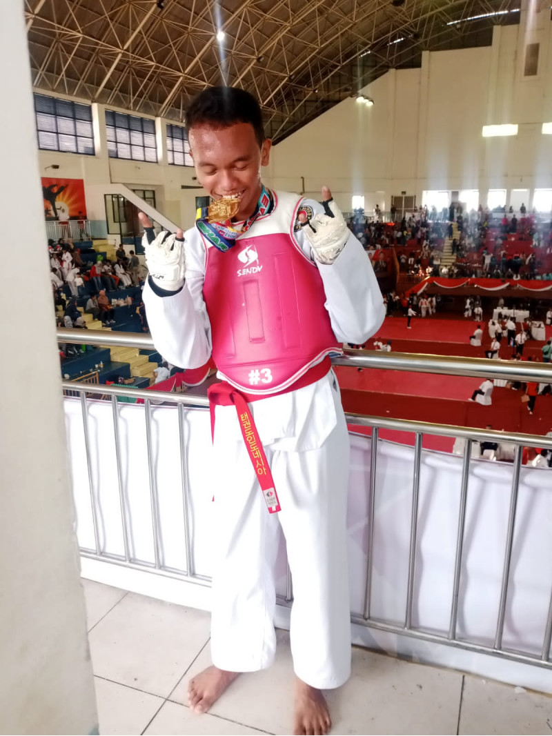 Atas prestasi Juara 1 dalam Kategori Lomba Taekwondo Tingkat Nasional kategori kyurogi Putra.